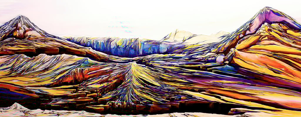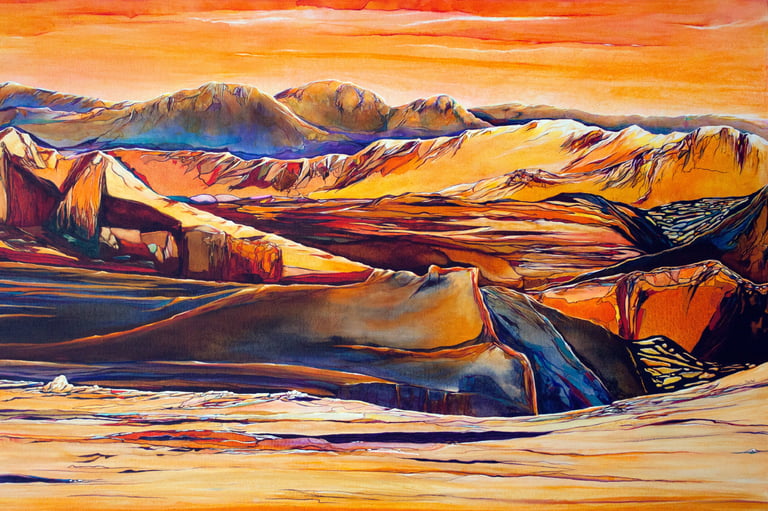 Explore fine art paintings inspired by abstract mountains, nature, and unique visualizations of our world.